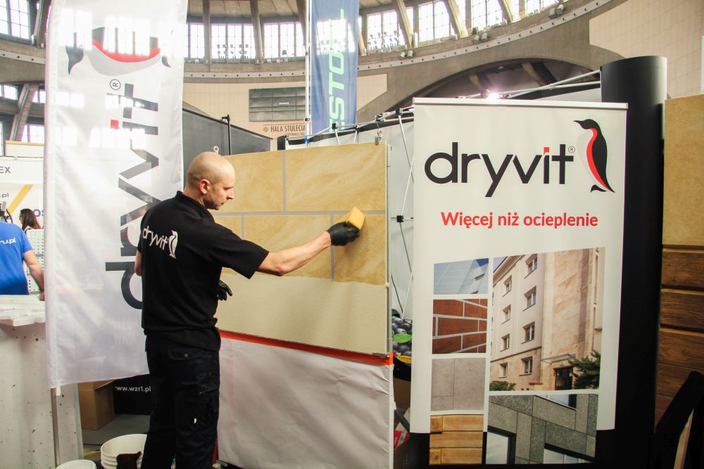 Firma Dryvit podczas tych kilku dni podczas targów prezentowała swoją szeroką gamę tynków dekoracyjnych. Mogliśmy zobaczyć na żywo jak powstają takie efekty dekoracyjne jak: rdza, miedź, beton architektoniczny czy efekt elewacji wentylowanej.