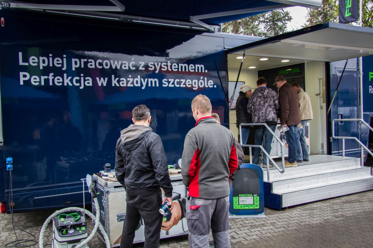Wielki DODGE Festoola wtoczył się na parking przed naszą siedzibą. Po otwarciu naczepy naszym oczom ukazały się wszystkie flagowe produkty z zielonym logiem Festool. Zaprezentowano wszystkie tegoroczne nowości jak i produkty już dobrze znane profesjonalnym firmom wykonawczym. Z nowości na uwagę zasługuje zestaw ze szlifierką przegubową LHS – E225 PLANEX wraz z odkurzaczem CTL 36 E AC. Nowa szlifierka przegubowa, dzięki zastosowanej technologii, pozwala na pracę bez potrzeby schylania się – takie rozwiązanie odciąża plecy podczas pracy. Dzięki odkurzaczowi CTL 36 E AC możliwe jest podłączenie szlifierki i bezpyłowa praca – koniec ze wszechobecnym pyłem!