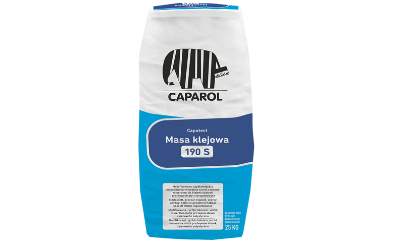 Klej Capatect 190 S firmy Caparol jest stosowany do klejenia styropianu białego i grafitowego do elewacji, lub jako szpachla do wyrównywania i uzupełniania ubytków na grubość do 1.5 cm.