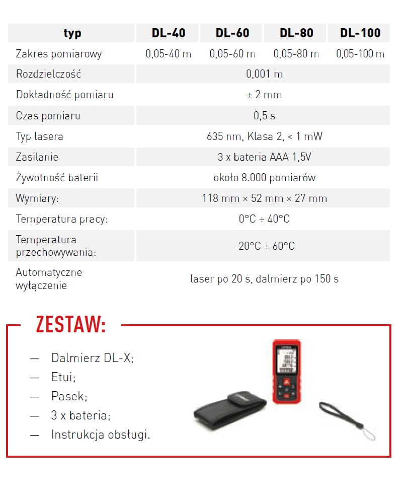Dalmierz laserowy DL80X [L1-077] Zakres pomiarowy: od 0,05 m do 80 m