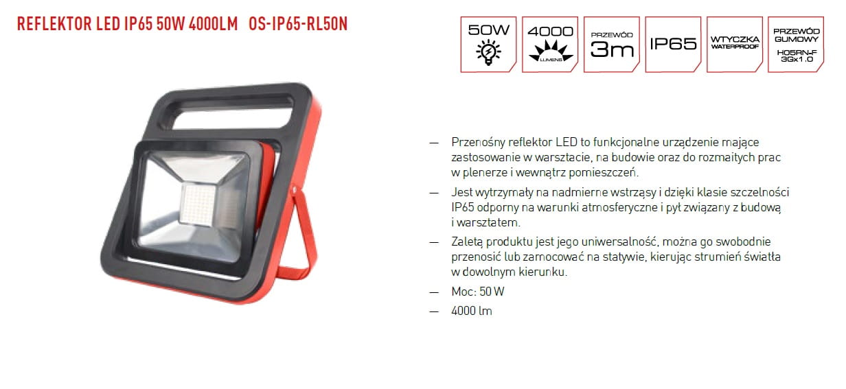 Lampa reflektor LED 50W (4000lm) IP65 [13-OS-604]