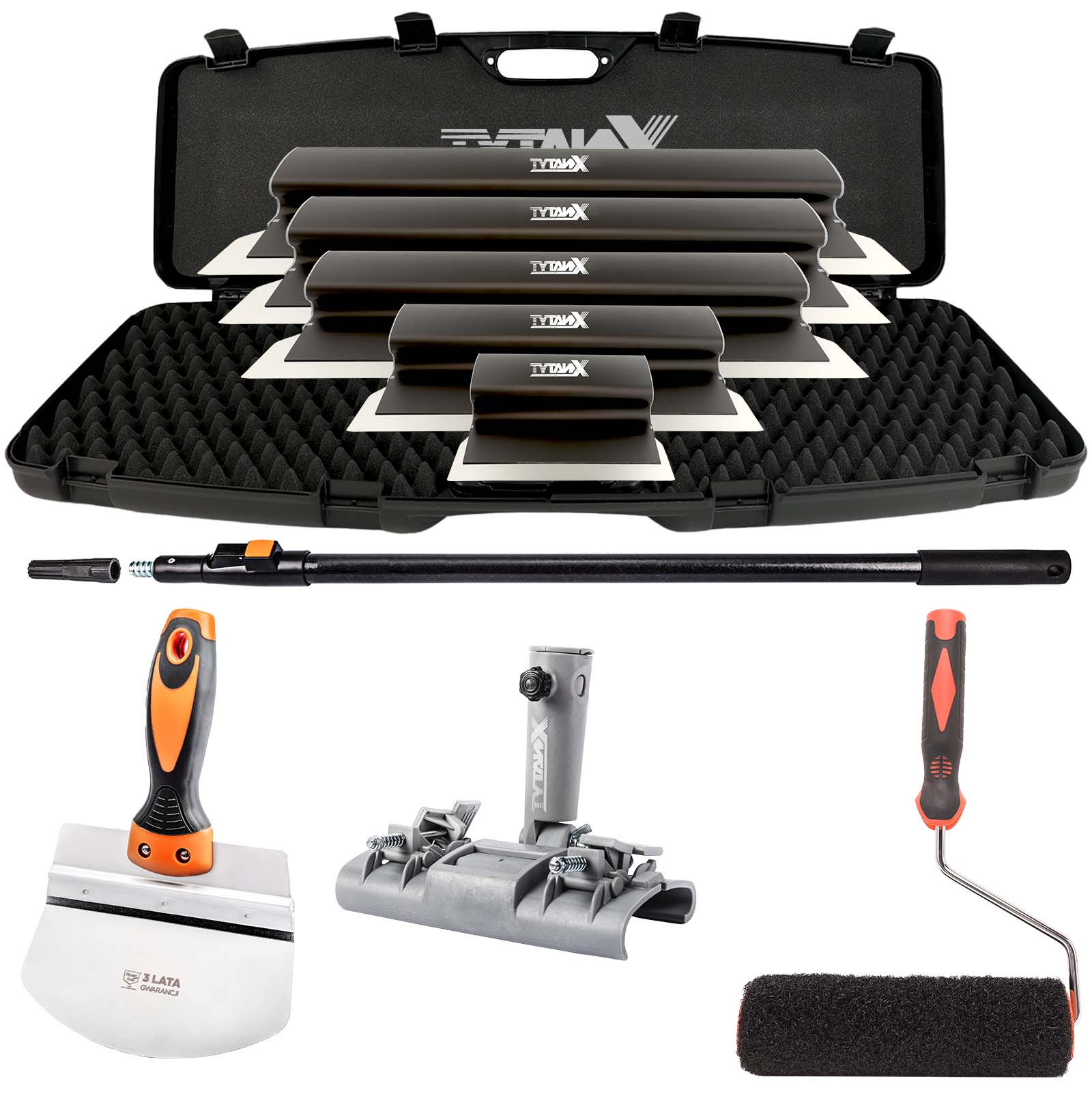 Zestaw noży do gładzi Tytanx - 100, 80, 60, 40, 25 cm - zestaw szpachli do gładzi, noże do gładzi, pióra do gładzi w walizce transportowej