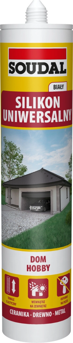 SOUDAL Silikon Uniwersalny to silikonowy uszczelniacz o utwardzaniu kwaśnym, idealny do zastosowań budowlanych i warsztatowych zarówno wewnątrz, jak i na zewnątrz. Dzięki wyjątkowym właściwościom zapewnia trwałe i estetyczne połączenia w różnych warunkach.
