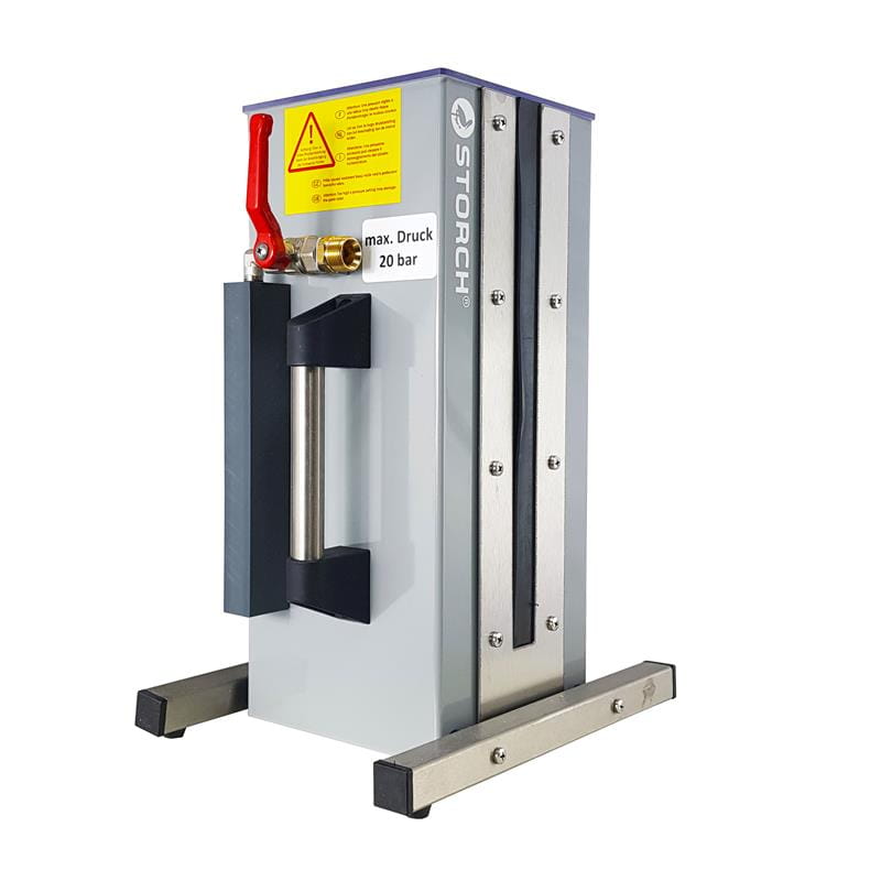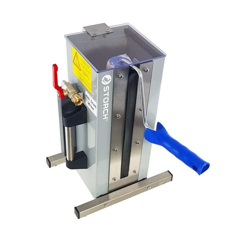 Do myjki Storch Turbo-Wash wystarczy podłączenie myjki wysokociśnieniowej. Dopływ wody jest regulowany przez zawór kulowy włoskiego producenta. Górna część myjki do wałków jest wykonana z przeźroczystego, wytrzymałego plastiku. Takie rozwiązanie pozwala na bieżącą ocenę, czy wałek jest już czysty.