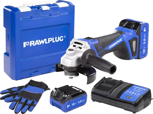 Szlifierka Kątowa RawlGRINDER 18V, 125mm, 2xAkumulator5Ah, szybka ładowarka 6,5A (R-AG-1801B)