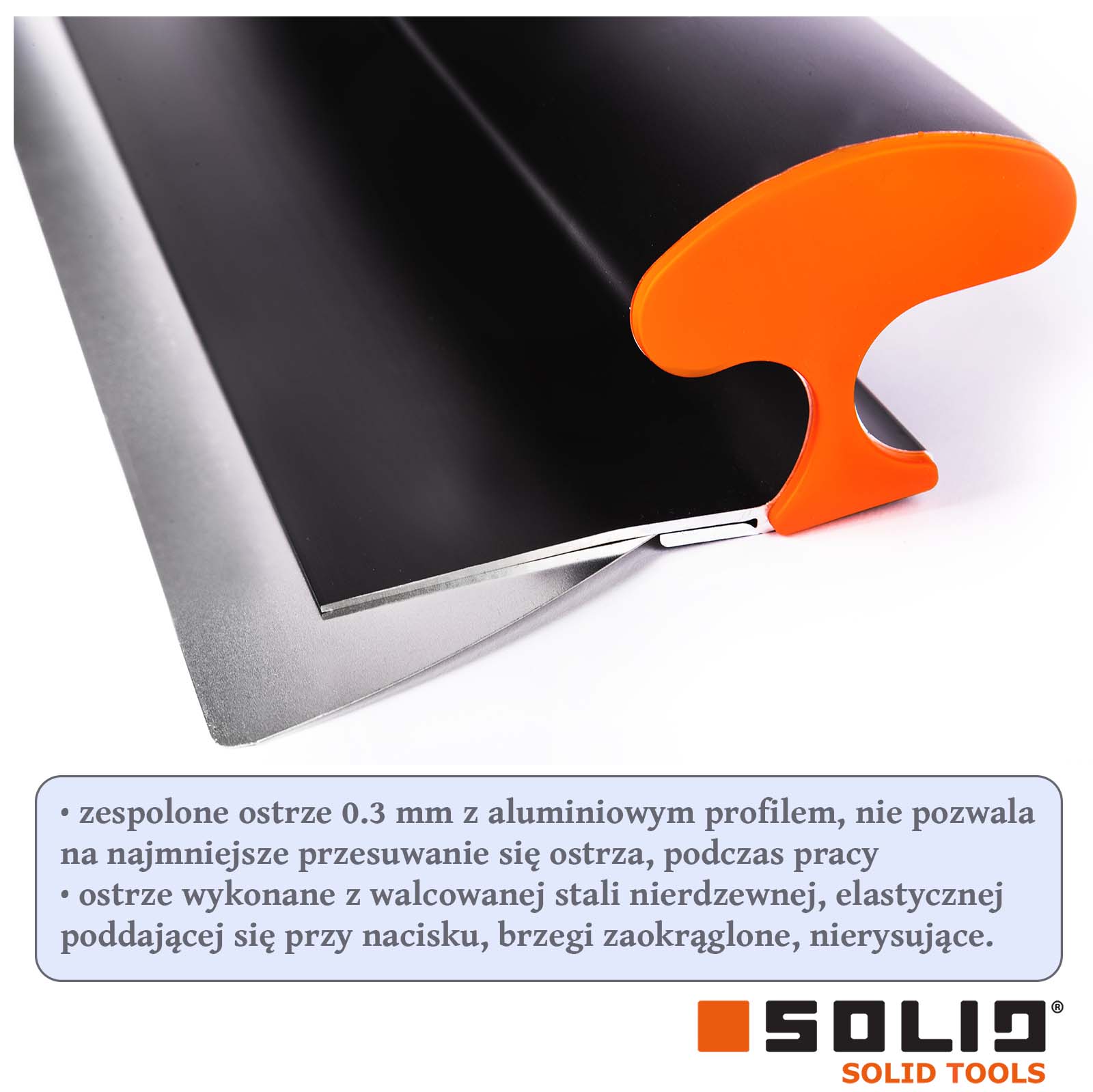 - 1 x SOLID nóż do gładzi 80 cm - profesjonalna wersja anodowana, z zamontowanym ostrzem 0.3 mm, gotowy do prac