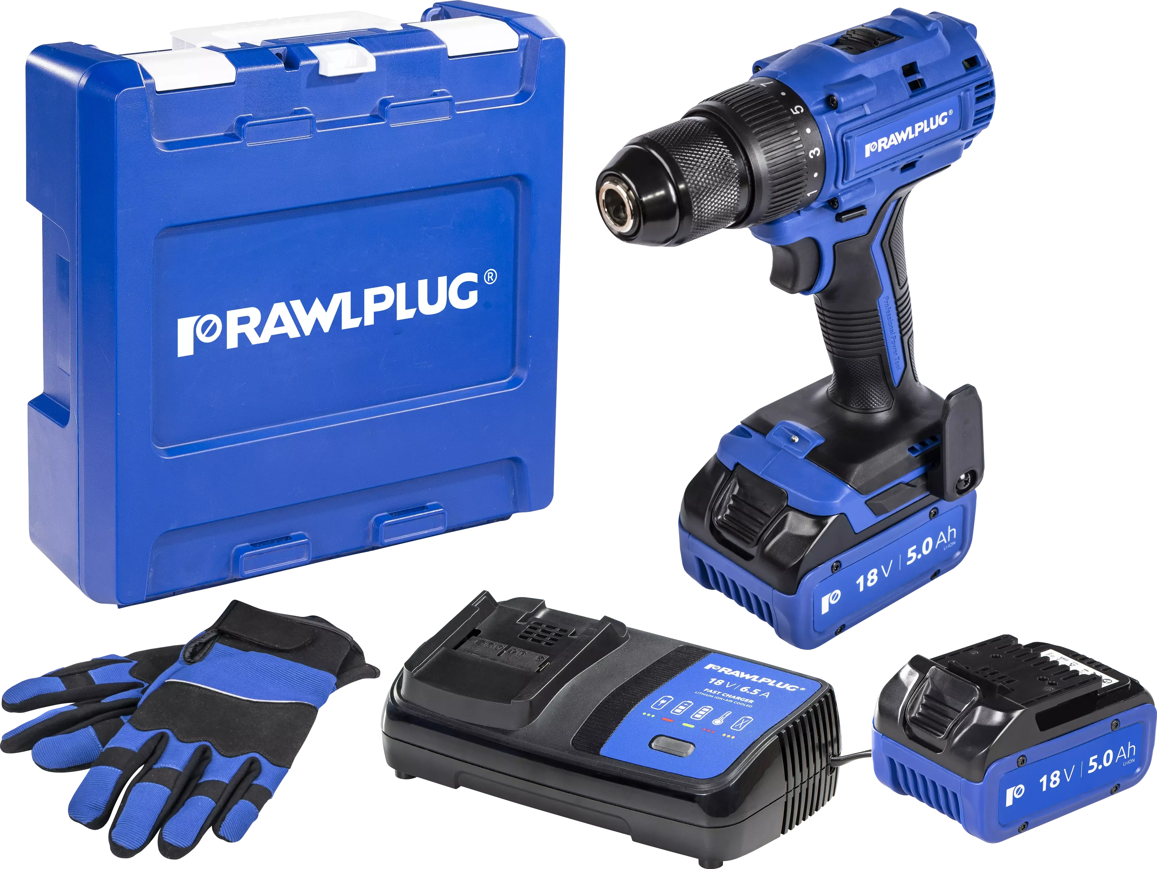 Wiertarko-wkrętarka RawlDRIVER 18V, 70Nm 2xAkumulator 5Ah, ładowarka 6,5A, walizka