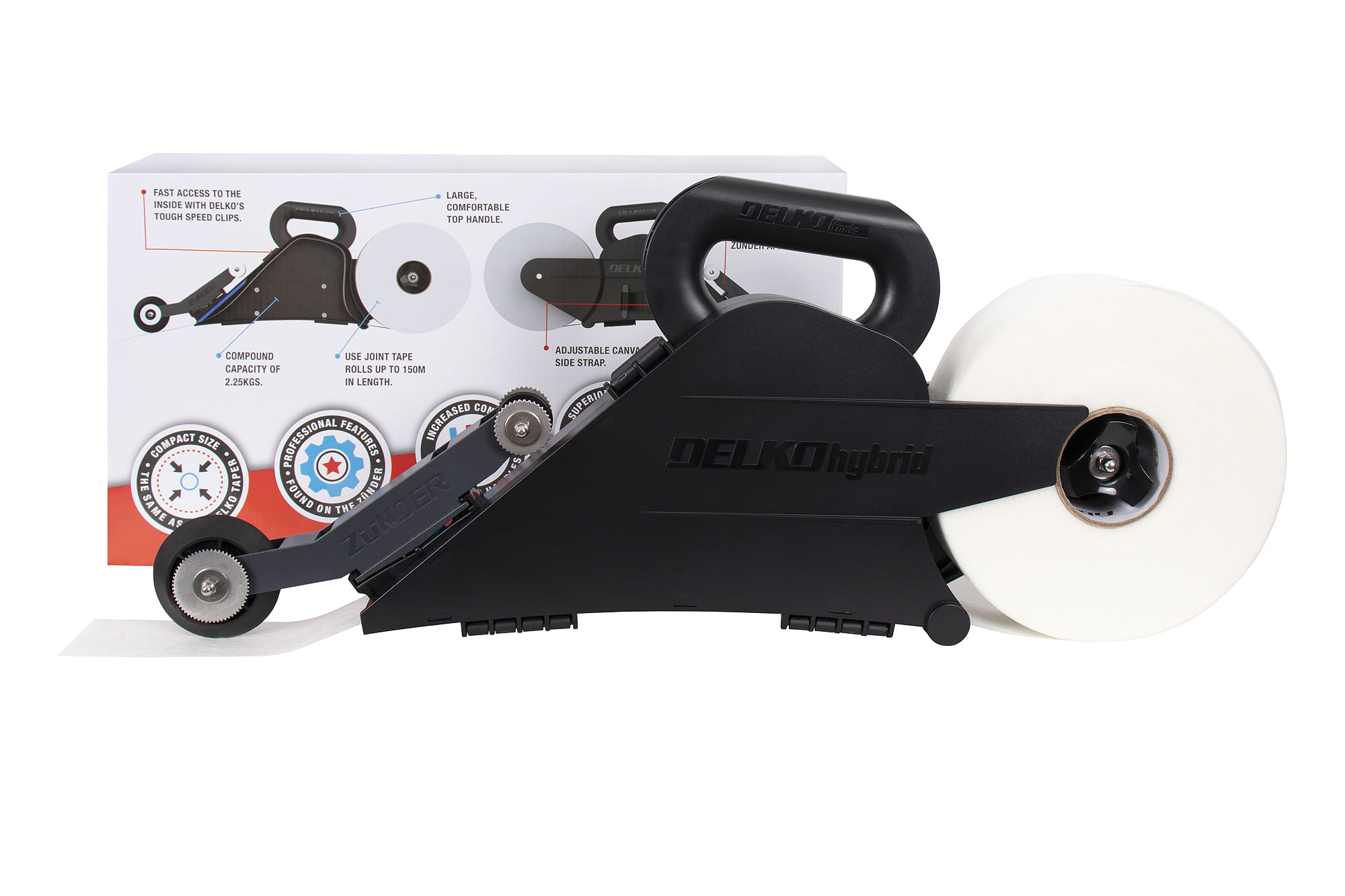 Delko Tools Hybrid to przyrząd ułatwiający szybkie łączenie płyt g/k. Narzędzie łączy w sobie podajnik taśmy i masy do szpachlowania. Spoiner Hybrid Delko Tools posiada aplikator do rogów wewnętrznych oraz możliwość obsługi przez osoby prawo lub leworęczne.