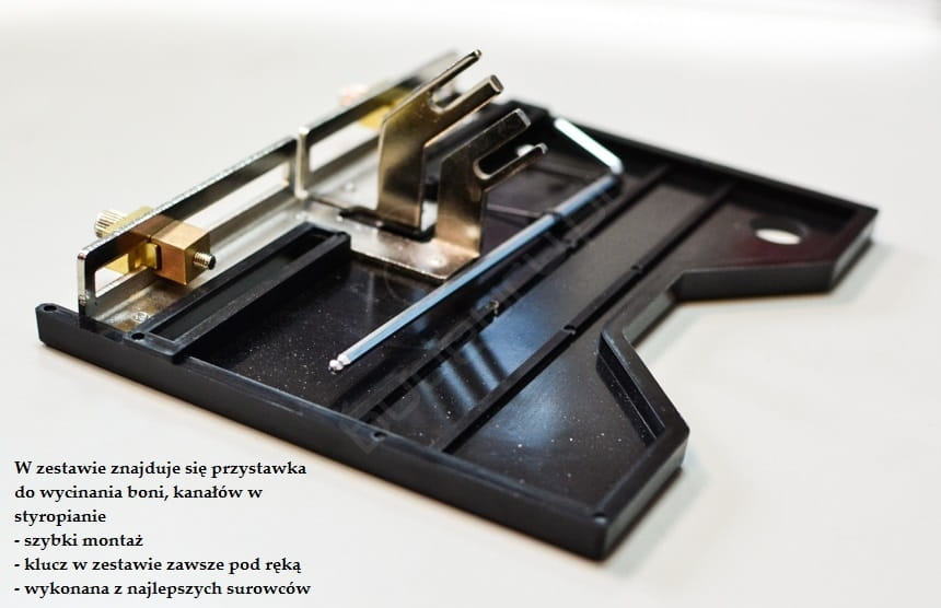 Po zamontowaniu umożliwia wycinania kanałów w styropianie/styrodurze.